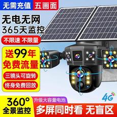 太阳能摄像头360度无死角手机远程无需网络室外夜视三画面监控器